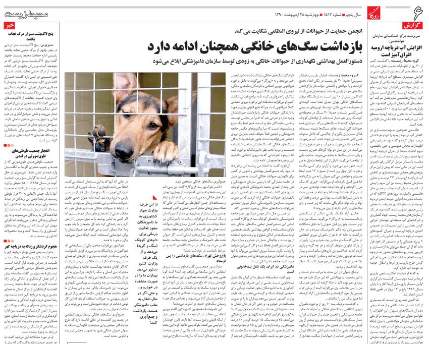 – از 8 ماه پیش تا کنون اطلاعات کلیه حیوانات در پرونده های دامپزشکی حیوانات ثبت می شود . تمامی این پرونده ها جهت بازدید در اختیار اینجانب قرار گرفت. در پرونده های دامپزشکی موجود در مرکز پرونده یک قلاده سگ وجود داشت که در ابتدای ورود ، به تشخیص دامپزشک مرکز مبتلا به عفونت ریوی ( پنومونی ) و نارسایی قلبی بوده و از آنجائیکه جهت آزمایش ، مناسب تشخیص داده نشد حیوان مزبور پس از درمان و واکسیناسیون به مدت دو هفته در مرکز نگهداری و پس از واکسیناسیون رها سازی شده بود . همچنین پرونده گربه ای وجود داشت که پس از ورود به مرکز زایمان کرده بود و حیوانات در مرکز نگهداری و پس از پایان دوران شیردهی به همراه مادرشان رها سازی شده بودند.