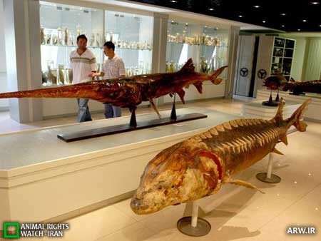 این یک جفت خاویار چینی ساکن آکواریوم بزرگ شهر پکن هستند. این ماهیهای خاویاری میتوانند وزنی حدود 500 کیلوگرم و طولی بیش از 5 متر داشته باشند و از بزرگترین ماهیهای خاویاری جهان به شمار میروند. سدسازی روی رودخانهها این آبزیان غولپیکر را نیز در معرض خطر انقراض قرار داده است.