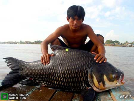 این گربهماهی غولپیکر که در آبهای کامبوج صید شده، حدود 3 متر طول و 300 کیلوگرم وزن دارد. این ماهی یکی از بزرگترین ماهیهای ساکن آبهای شیرین جهان است و به دلیل صید بیرویه، سدسازی و از بین رفتن زیستگاهش به شدت در معرض خطر انقراض قرار گرفته است.