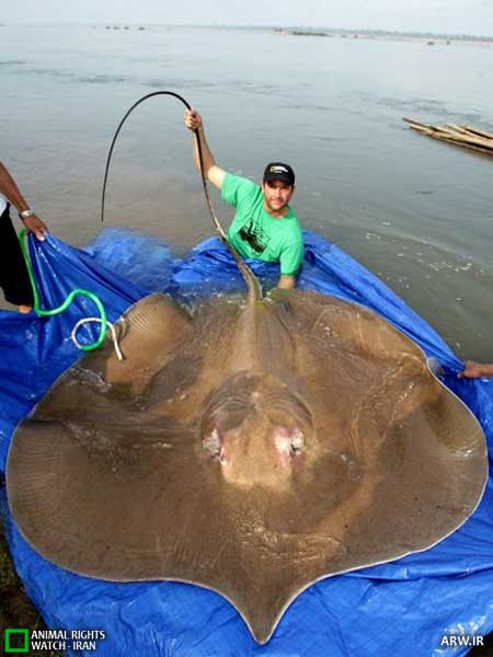 این سفرهماهی غولآسا که بیش از 4 متر طول دارد و در آبهای کامبوج صید شده، بدونشک یکی از بزرگترین سفرهماهیهای آب شیرین جهان است.