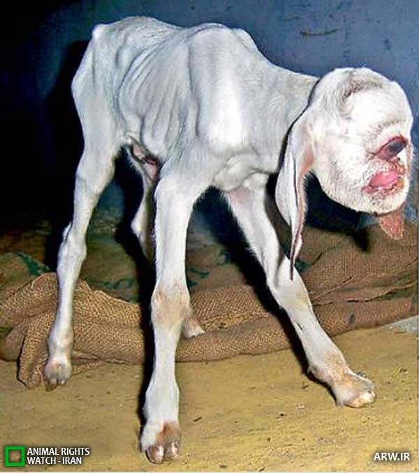 دیده بان حقوق حیوانات: به گزارش روابط عمومي اداره كل دامپزشكي استان بوشهر ، درتاريخ 11 اسفند ماه در يكي از دامداريهاي شهرخورموج گوساله اي بدنيا آمد كه از ناحيه فك پائين به فك گوساله دوم چسبيده بود .