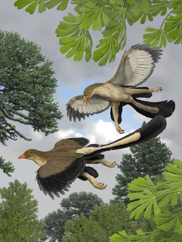 ما نمیدانیم نخستین بار کدام یک از این جانوران پردار توانست بال بزند و بپرد. فرگشت شاهپرها مدتها پیش از فرگشت پرواز رخ داده و البته انگیزه اصلی دایناسورها برای داشتن شاهپرهای بلند و رنگی و زیبا نیز در اصل انتخاب جفت بوده است. سنگوارههای پردار دایناسورهایی که تا دیروز برهنه تصورشان میکردیم، اکنون نه فقط در چین بلکه در اروپا و آمریکای شمالی هم چهره عیان میکنند و دانشمندان بیش از پیش مطمئن شدهاند میلیونها سال پیش از اینکه پرندهای از نسل دایناسورها پرواز را تجربهکند، دایناسورها دارای پر و شاهپرهای رنگی و زیبا شدهبودند و در نتیجه پرندگان تنها یکی از گروههای متعددی بودند که در آن روزها بدنی پردار و بالهایی گشوده داشتند.