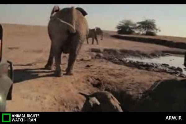 دیده بان حقوق حیوانات: يك بچه فيل داخل حفره اي از گل افتاده و قادر به خروج از آن نيست. مادر و اطرافيانش نوميدانه دور حفره مي چرخند، كاري از دستشان ساخته نيست.