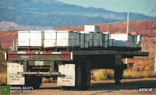 دیده بان حقوق حیوانات: با واژگون شدن كاميوني حامل صدها كندو در بزرگراه يوتا، مشكلاتي در عبور و مرور خودروها ايجاد شد.