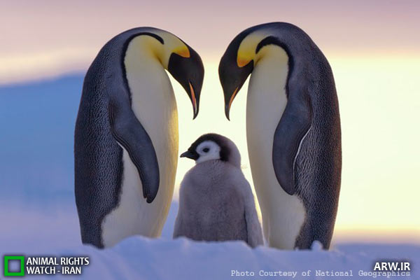 دیده بان حقوق حیوانات: کلاوس پاسبرگ در سفر به قطب جنوب، این نمای دیدنی را از یک خانواده ی پنگوئن امپراتور ثبت کرده است. پنگوئنهای پدر و مادر نگهداری از کودک و سفرهای چند هفتهای برای تهیه غذا را به ترتیب انجام میدهند.