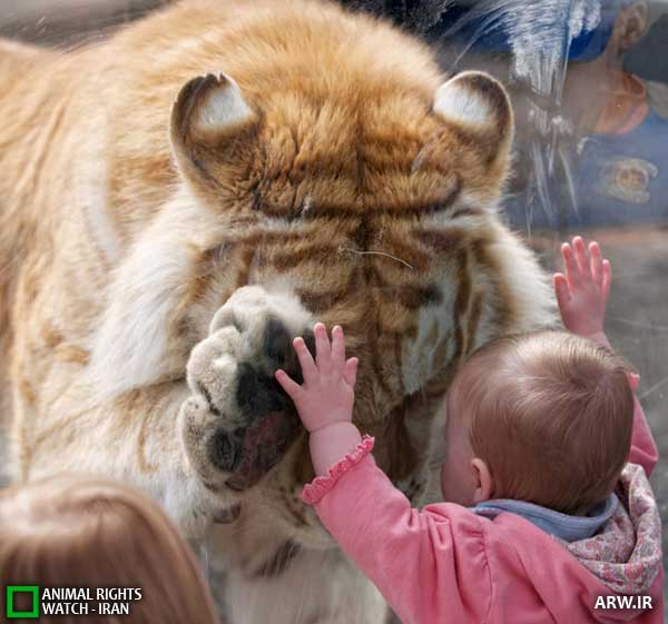 دیده بان حقوق حیوانات ایران : با توجه به رنگ نقوش پوست و جثه این حیوان، به نظر می رسد تصویر مربوط به ابراز احساسات یک تایگون باشد نه یک ببر. تایگون (و لایگر) حاصل جفت گیری غیر طبیعی شیر و ببر در اسارت هستند.