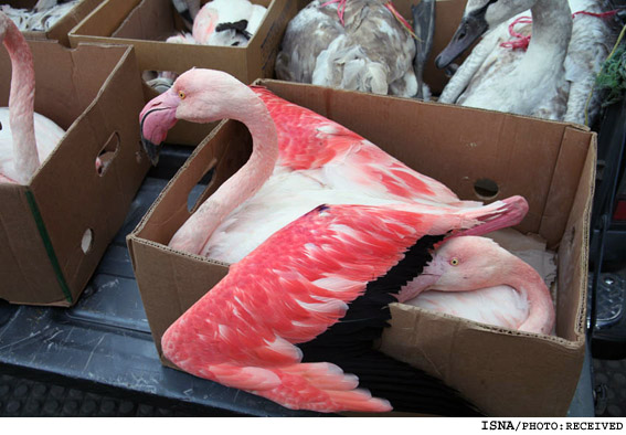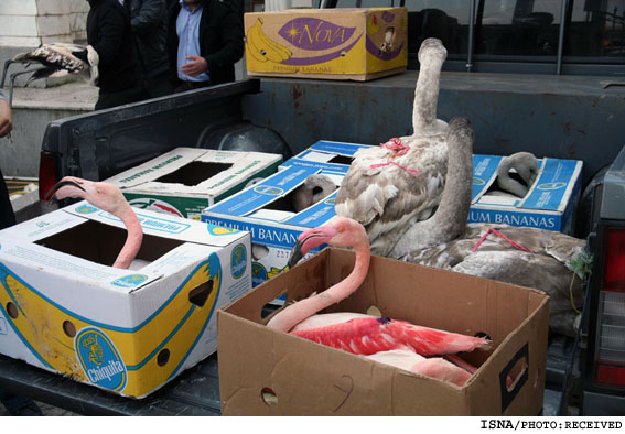 دیده بان حقوق حیوانات ایران : ماموران پلیس به خودرو حامل پرندگان که از فریدونکنار مازندران به سوی تهران در حال ترانزیت بود در مسیر جانبازان رشت، مشکوک شدند و پس از تفتیش خودرو، محموله قاچاق پرندگان از آنها کشف شد. در این محموله 14 فلامینگو و 2 قو زنده وجود داشت. به گفته مدیرکل محیط زیست گیلان، اسارت در قفس و عدم دسترسی این پرندگان به غذا منجر به ضعف و ناتوانی آنها برای پرواز شده بود که این پرندگان پس از تجدید نیرو، حلقهگذاری در پناهگاه حیات وحش سلکه، تیمار و آزاد شدند.