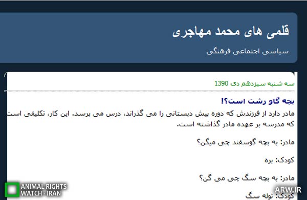 دیده بان حقوق حیوانات: محمد مهاجری در وبلاگش نوشته: