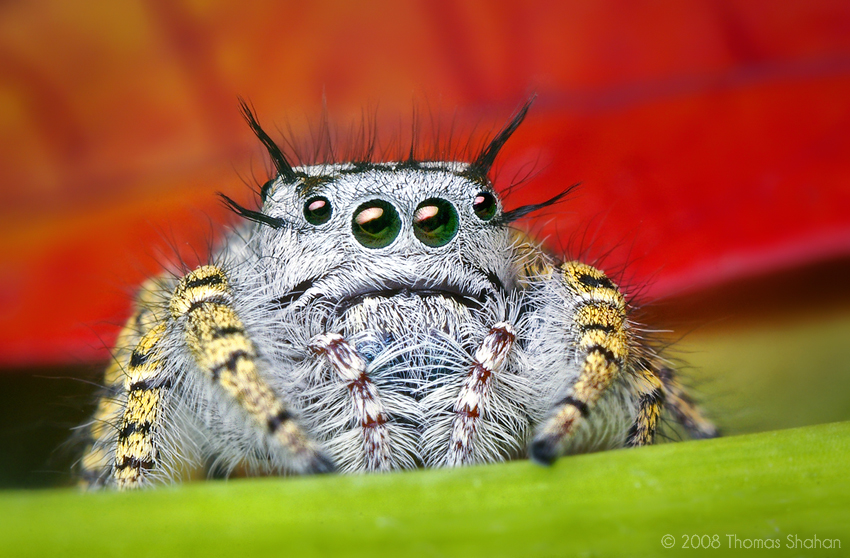 دیده بان حقوق حیوانات ایران: توماس شاهان به عکس گرفتن از جانورانی علاقه دارد که خیلیها از آنها نفرت دارند: عنکوبتها و حشرات! نکته جالب توجه این است که وی برای تهیه عکسهایش هیچ محدودیتی برای حرکتشان ایجاد نمیکند.