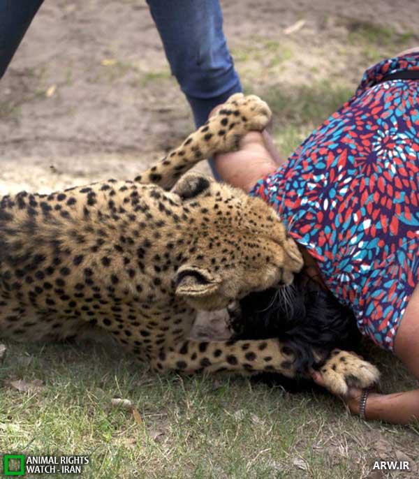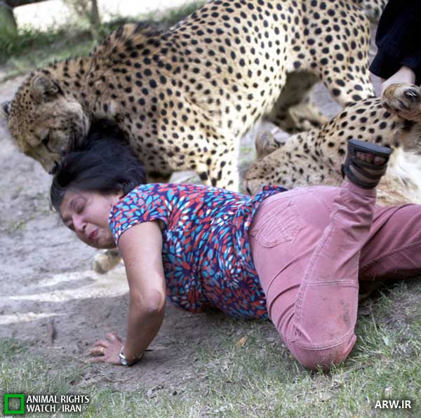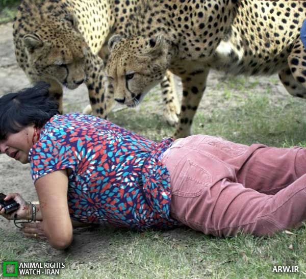 دیده بان حقوق حیوانات ایران: حمله دو چیتا به یک زن 60 ساله توریست در سافاری پارک بندر الیزابت در آفریقای جنوبی. این عکس را همسر این زن گرفته است. خوشبختانه این زن آسیب خیلی جدی ندید اما برای درمان زخم های سر ، چشم و پای خود به بیمارستان منتقل شد.