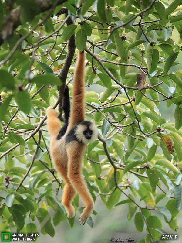 دیده بان حقوق حیوانات: در این عکس، تصویری از یک بچهگیبون را مشاهده میکنید که ماهرانه در حال اجرای عملیات آکروبات است.