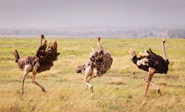 دیده بان حقوق حیوانات: حیات وحش آفریقا پر است از شگفتی، مانند این شترمرغها که به خاطر رفتار عجیبشان به شترمرغهای کَنکَن (Cancan Ostriches)مشهورند. این عکس را رومن وایلی از آمبوسلی کنیا برای نشنالجئوگرافیک ارسال کرده است.