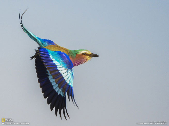 دیده بان حقوق حیوانات: محمد الناصر، این پرنده سبزقبای سینه بنفش (lilac-breasted roller) را در منطقه حفاظتشده سابیسابی در آفریقای جنوبی مشاهده کرد و عکس را برای نشنالجئوگرافیک فرستاد.