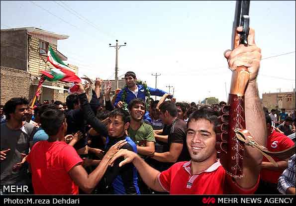 اتفاق دیگری که در مراسم استقبال از سعید عبد ولی رخ داد شلیک گلوله با اسلحه شکاری و در میان جمعیت بود. [10] سووال اینجاست که آیا این فرد که از روی عکس قابل شناسایی است مجوز حمل سلاح شکاری دارد؟ مسوولین فردی را که از فرط شادی سلاح به دست در میان جمع حاضر می شود و شلیک می کند، برای داشتن مجوز حمل و استفاده سلاح صالح می دانند؟ و اگر می دانند آیا شلیک در فاصله کمتر از 50 متری خطوط برق و تلفن (که در تصویر پیداست)، شلیک در معابر شهری و روستایی و شلیک در میان جمعیت را منطبق بر قانون می دانند؟
