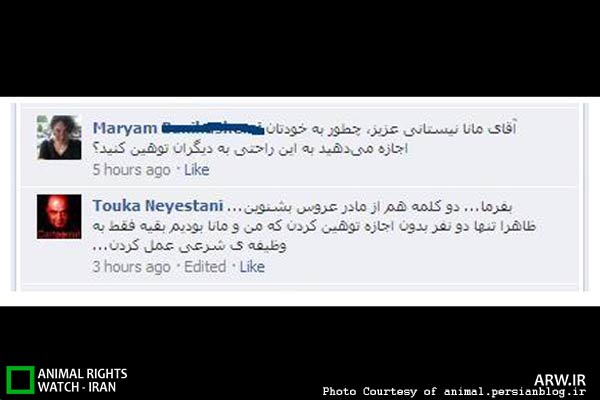 پی نوشت: در این یادداشت موضوع را از دید حامیان حیوانات و مسائل مرتبط با آن بررسی کردم. اینکه آیا یک هنرمند مدعی روشنفکری و آزادی بیان حق دارد مخالفان خود را – ولو اینکه اشتباه بگویند- مورد توهین و تمسخر قرار دهد و نقد رفتار لجوجانه وتوهین آمیز آقای نیستانی خود بحث دیگری است که در حوصله ی این نوشتار نیست.
