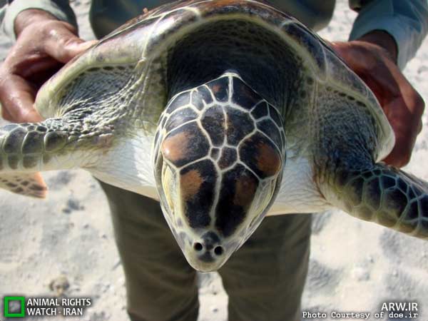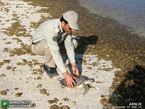 دیده بان حقوق حیوانات: با همكاري هميار محيط زيست يك قطعه لاكپشت سبز در آبهاي پارك ملي دريايي نايبند رهاسازي شد