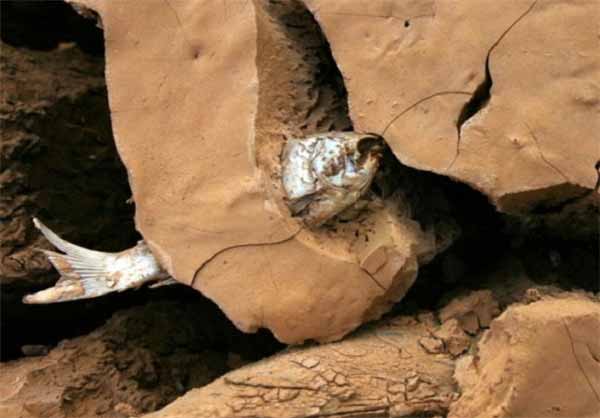 در زیر تصویری از آن چه خشک سالی در یک دریاچه در جنوب شرقی چین ایجاد کرده است را میبینید.