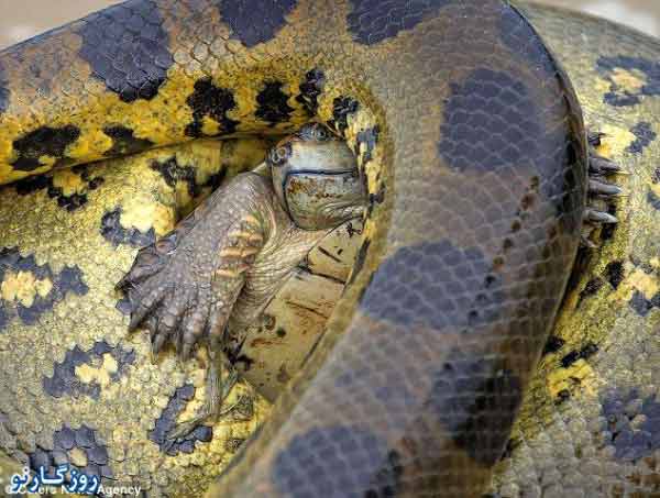 به گزارش روزگار نو، در یکی از مردابهای واقع در ونزوئلا مار آناکوندا (یا بوای آبی) لاک پشتی را شکار می کند؛ اما لاک پشت آن قدر برای حفظ جان تقلا کرد تا عکاسی که شاهد ماجرا بوده به دادش می رسد و او را نجات می دهد.