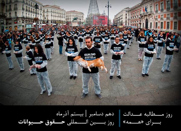 به گزارش دیده بان حقوق حیوانات چند سال پیش، افراد، سازمان ها و انجمن ها از سرتاسر جهان درخواست کردند که این دیدگاه را باید به سایر حیواناتی که سیاره را با ما شریکند نیز تسری داد و 10 دسامبر باید روز بین المللی حقوق حیوانات نیز نام گیرد. انسان ها نیز به نوعی حیوان محسوب می شوند اما میلیاردها موجود ذی احساس دیگر – که مانند ما دارای قدرت ادراک و تفکر هستند – بسته به نوع گونه شان به قربانیان ما تبدیل شده اند. سالانه میلیاردها گاو، خوک، گوسفند، مرغ، ماهی، خرگوش، بز، رت، موش، اسب، الاغ، شتر، سگ، گربه، اردک، بوقلمون، غاز و موجودات دریایی در دستان ما رنج می برند و می میرند.