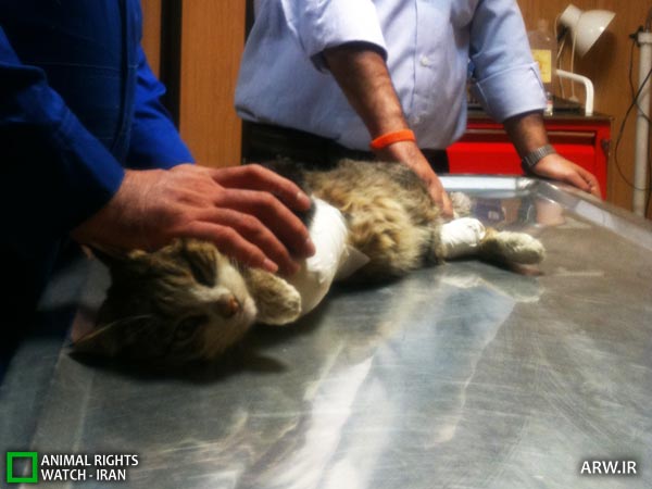 پیروز که در کلینیک کلبه حیوانات تحت درمان قرار گرفته، به دلیل شدت صدمات وارده هم اکنون باید با یک دست زندگی را ادامه دهد.