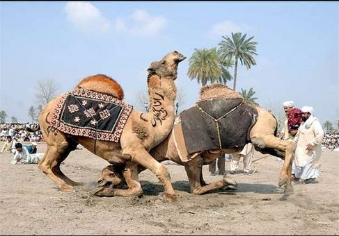 به گزارش فارس از اسلامآباد، کشتی شترها یکی از سرگرمیهای محبوب مردم پاکستان است که غالبا در فصل زمستان انجام میشود.اگرچه شترهای خشمگین بسیار خطرناک بوده و حتی ممکن است به انسان نیز حمله کنند اما این موضوع باز هم علاقمندان به این ورزش را از انجام آن بازنمیدارد.این حیوانات از سنین پایین برای انجام این بازی آموزش داده میشوند و هر مسابقه ممکن است تا نیم ساعت نیز به طول بینجامد.مردم پاکستان این بازی را نوعی ورزش سنتی دانسته و حتی با خانواده خود عازم دیدن این مسابقات میشوند.