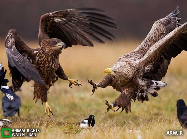 در این تصویرکه سیلویا دوماراژکا از لهستان برای نشنالجئوگرافیک ارسال کرده، رقابت دو عقاب دمسفید را که احتمالا برای تصاحب غذاست، ثبت کرده است. عقابهای سرسفید میل تهاجمی زیادی دارند.