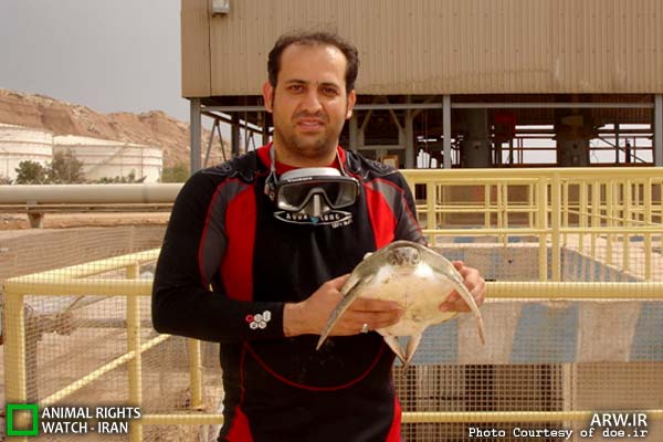 دیده بان حقوق حیوانات: لاكپشت دريايي سبزِ در دام ِ حوضچه ي پتروشيمي، به دريايِ آبيِ آزادي پيوست!