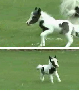 این کره اسب از نژاد اسبهای مینیاتوری است، اما از اندازه معمول در نژاد خود کوچکتر است.