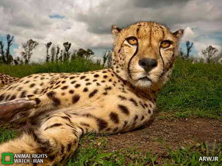 دیده بان حقوق حیوانات ایران : دانش > طبیعت – یوزپلنگ ماده، خسته از درد پای شکستهاش روی علفهای مزرعه شیرها (وتوردنلییوپلاز) دراز کشیده و از اینکه فرانک تریمبوس با دوربینش او را مورد توجه قرار داده، خوشش آمده است.