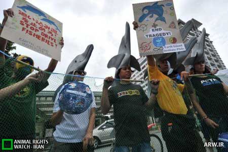 دیده بان حقوق حیوانات ایران : تظاهركنندگان در اعتراض به كشتار سالانه دلفينها و انتقاد از شكار فجيع و خونبار اين آبزيان زيبا و بيآزار در اين كشور، مقابل سفارتهاي ژاپن در سراسر جهان تجمع كردند.به نقل از ايسنا، در واشنگتن شمار زيادي از مردم معترض و دوستداران محيط زيست در مقابل سفارت ژاپن پلاكاردهايي را در دست گرفته بودند كه روي آنها نوشته شده بود: «دلفينها ميخواهند زندگي كنند».