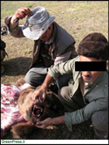 شکل سر بریدن که عینا طبق ذبح شرعی انجام شده حکایت از زنده بودن خرس به هنگام ذبح دارد. ذبح این خرس قهوه ای نشان دهنده تمایل قاتل آن برای استفاده از پوست و اعضای بدن است چرا که در غیر این صورت مردار و نجس محسوب می شود. جالب اینجاست که احتمالا این شکارچی که چنین دقتی در ذبح داشته از حرمت شرعی کار غیر قانونی مطلع نیست! کاردی که در تصویر دیده می شود، کارد قصابی است.