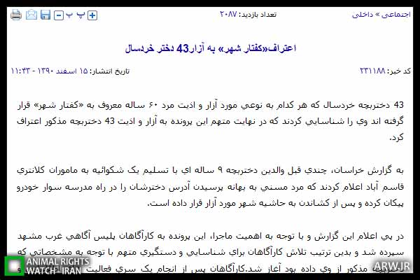 جالب است که کرکس در آسمان شهر پرواز میکنند، روباه خشمگین حمله میکند، توله شیرها در خیابانها شهر جولان میدهد، میمون هم در ایستگاه اتوبوس مردم را به وحشت میاندازد و مار افعی در بازار به راحتی خرید و فروش میشود و مسئولان امر برای این مشکل هیچ اقدام اساسی انجام نمیدهند و توپ را در زمین یکدیگر پاس میدهند.
