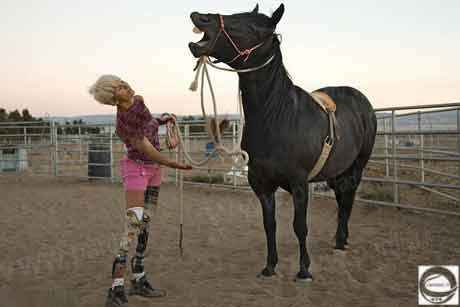 باربارا 35 ساله است و به صورت مادرزادي قسمت زانو به پايين پاهايش را ندارد. او با توجه به قدرت بدني فوق العاده بالا تنه اش قادر است به راحتي اسب سواري کند و حتي روي اسب حرکات نمايشي انجام دهد