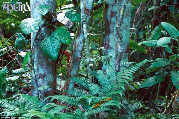 این کرم سبز (گونه Tanaecia) به زیبایی با محیط اطرافش در هم آمیخته است. درجه و میزان پیشرفت حشرات در فن استتار، همواره باعث حیرت دانشمندان بوده است.