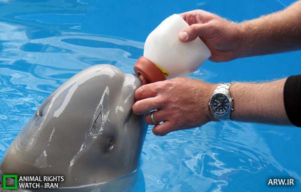 “دنیس کریستن” در آکواریوم جورجیا به یک بچه نهنگ بلوگا شیر می دهد. این بچه نهنگ در مرکز حیات دریایی آلاسکا واقع در سیوارد مورد توانبخشی قرار گرفته و سپس به آکواریوم منتقل شده است.