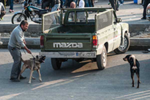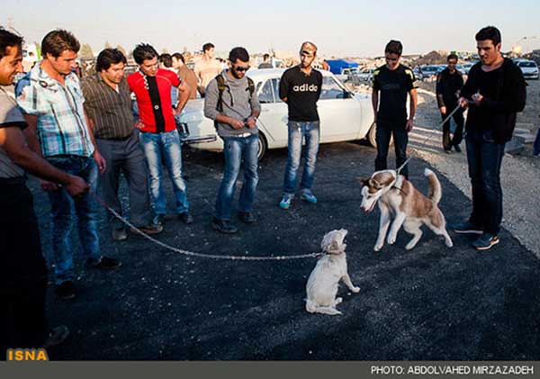 دیده بان حقوق حیوانات ایران: پسر حدود ۱۸ ساله به نظر میرسد. تنها نیست. همراه با سگ درنده و مهاجمش از ماشین کروک آلبالویی پیاده میشود. اسکارفی (دستمال) که دور مچش دارد را باز میکند و به سرش میبندد. بعد زنجیر و قلادهسگ را به یکی از درختان میانه شانه خاکی جاده میبندد و خودش هم همان دور و اطراف به گپ و گفت و معرفی سگ برای آنان که کنجکاوند مشغول میشود.کمی آن سو تر، مردی با ماده سگی که به هفت تا سگ تولهاش شیر میدهد، معرکه گرفته و عدهای را دور خود جمع کرده است.
