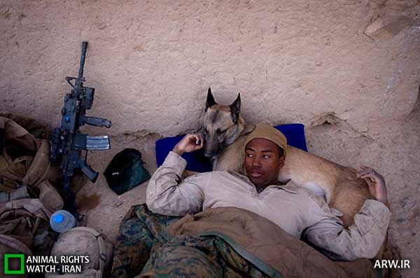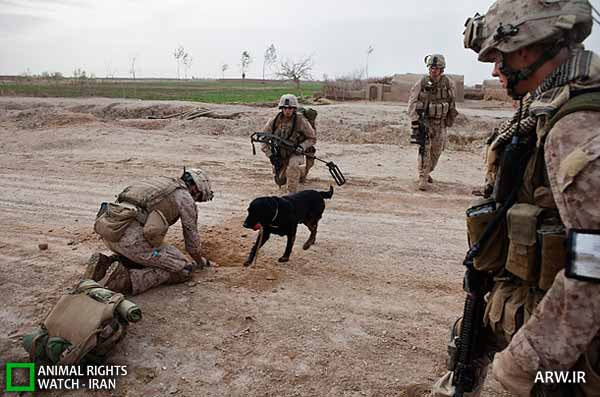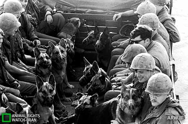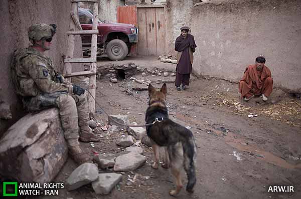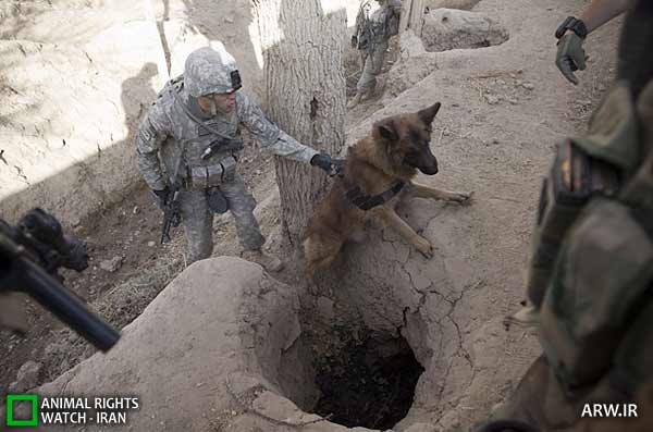 استفاده از سگ ها در جنگ به زمانهای خیلی قدیم در دنیای روم – یونان میرسد. آتیلا از سگها در لشکرکشی هایش استفاده میکرد. وقتی انگلستان به روسیه حمله کرد از سگها برای جنگیدن استفاده میکردند در عوض روسها هم برای حمله به شوالیه های اسب سوار از سگ های شکاری کمک گرفتند. در قرن بیستم وظیفه سگ ها متفاوت شد. در جنگ جهانی اول ، سگها سربازان مخفی شده در سنگرها را شناسایی می کردند و حتی ماسک ضد گاز هم داشتند. روسها به سگ ها آموزش دادند تا بمب ها را حمل کنند ، همچنین خیلی از سربازان از آنها به عنوان پیام رسان استفاه می کردند. در جنگ جهانی دوم ودر ویتنام سگ های پیش آهنگ به شناسایی مهاجمین مخفی شده در جنگل های انبوه کمک می کردند. امروزه سگ ها در ارتش آمریکا با توجه به درجه نیرویی که با آن کار می کنند درجه می گیرند اگر آن فرد ارتقا پیدا کند درجه سگ هم تغییر می کند.