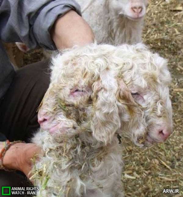یک کشاورز فلسطینی گوسفند دارای دو سر را در خارج از خانه اش در کرانه باختری و در اردوگاه پناهندگان در نزدیکی هبرون نمایش میدهد. عکس این گوسفند را در 9 نوامبر 2008 نشان میدهد.