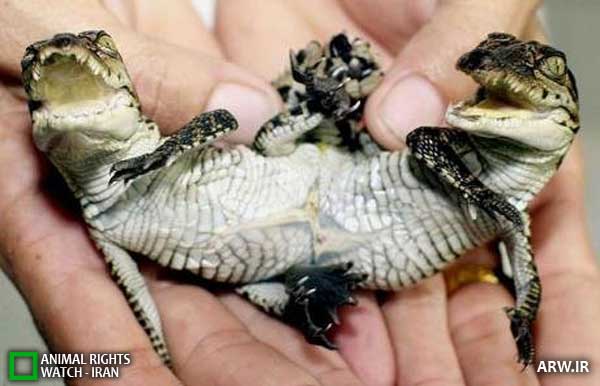 یک تمساح نوزاد دو سر در مزرعه تمساحها Samut Prakarn در حومه بانکوک ، تایلند. عکس این تمساح را در 25 ژوئن 2001 نشان می دهد.