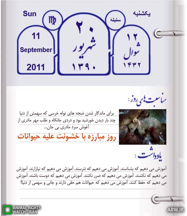 دیده بان حقوق حیوانات: همایش حقوق حیوانات و حیوان آزاری که قرار بود به مناسبت بیستم شهریورماه، روز مبارزه با خشونت علیه حیوانات برگزار شود لغو شد.