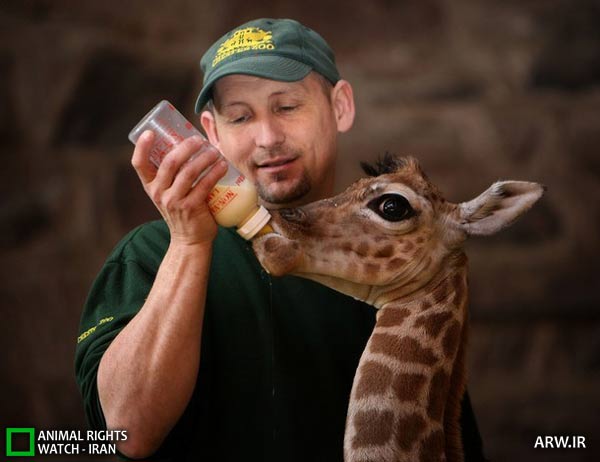تا حالا به یک بچه زرافه شیر دادین؟!/ تصویری