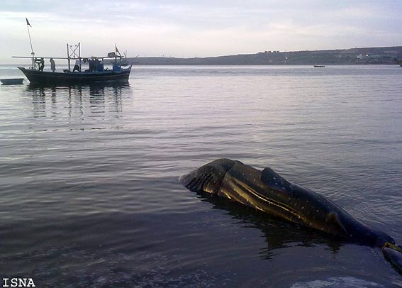دیده بان حقوق حیوانات: جسد بزرگترین جانور کره زمین که یک نهنگ آبی Balaenoptera musculus است در سواحل بحرکان استان خوزستان کشف شده است این نهنگ احتمالا به علت گیر کردن در تور صیادی جان داده است.