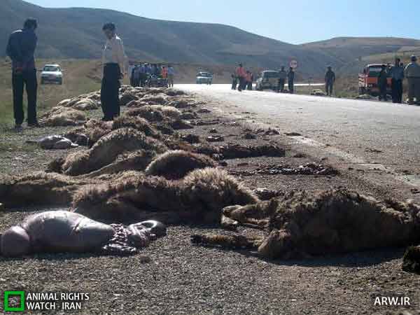 دیده بان حقوق حیوانات: فرمانده انتظامی جاجرم از برخورد یک دستگاه کامیون هوو با گله گوسفندان در حوزه استحفاظی این شهرستان خبر داد.به گزارش خبرگزاری فارس از بجنورد به نقل از پایگاه اطلاع رسانی پلیس خراسان شمالی، محمد قربانی اظهار داشت: برابر اعلام مرکز فوریتهای پلیسی 110 این فرماندهی مبنی بر برخورد یک دستگاه کامیون کشنده هوو با گله گوسفندان، بلافاصله ماموران پلیس راه در محل حاضر شدند.وی اضافه کرد: در محل موردنظر مشاهده شد که یک دستگاه کامیون کشنده هوو، با گله گوسفندان در کیلومتر 35 محور جاجرم- سبزوار برخورد کرده است.