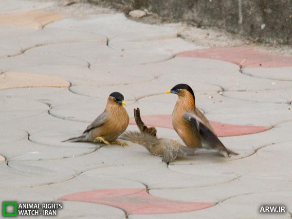 دیده بان حقوق حیوانات: یک جفت سار برهمنی با همکاری هم اقدام به کشتن یک گنجشک ماده می کنند. این اتفاق عجیب را عکاسی خوش شانس به تصویر کشیده است.